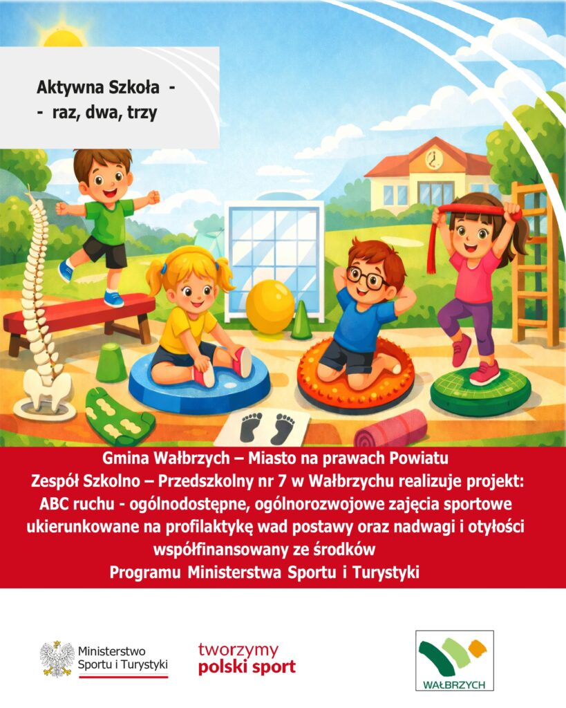 Projekt „ABC ruchu – ogólnodostępne, ogólnorozwojowe zajęcia sportowe ukierunkowane na profilaktykę wad postawy oraz nadwagi i otyłości” jest programem organizacji zajęć sportowych realizowanych z Projektu „Aktywna Szkoła – raz, dwa, trzy”. Projekt skierowany jest do uczniów szkół podstawowych z klas I-III i trwa od marca do grudnia 2025 r.